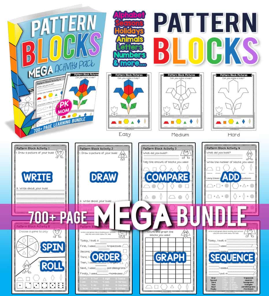 Which, if you are looking for structured pattern block learning, we’ve specifically developed 8 different learning activities you can use with pattern block pictures in our Pattern Block Activity Bundle.